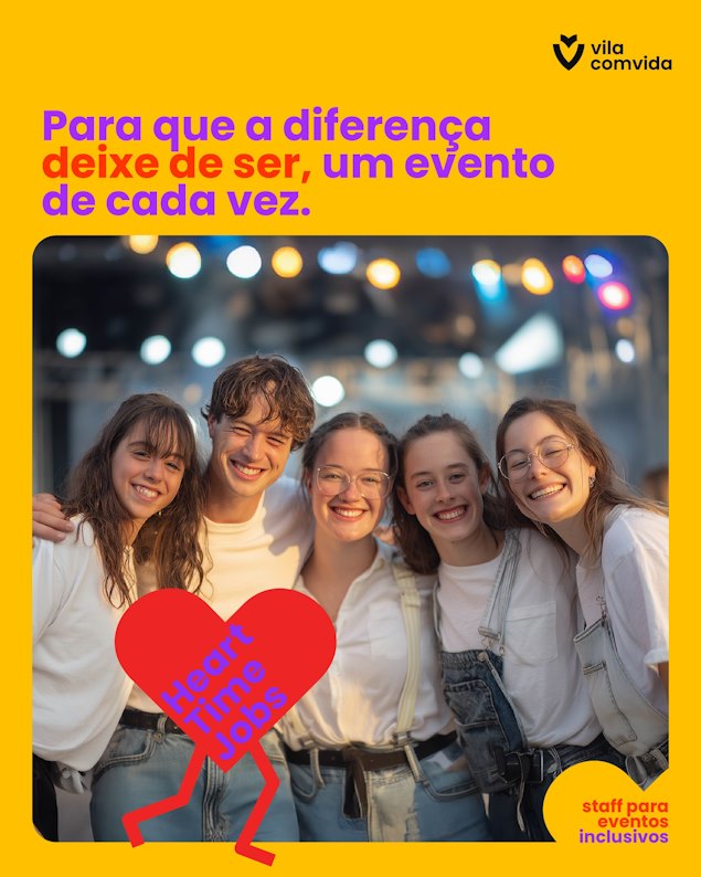 Criámos um serviço de staff para eventos mais inclusivos, que pode ser requisitado por qualquer marca, agência ou produtora de eventos. O serviço Heart-time jobs tem um impacto direto na vida dos jovens adultos com DID contratados, tem o potencial de se tornar uma fonte estável de receita para a associação Vilacomvida prosseguir os seus objetivos e simultaneamente, tem impacto na indústria de eventos a que a creme pertence.